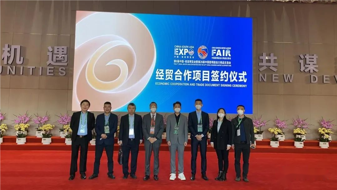 11月20日,第6屆中國(guó)-南亞博覽會(huì)暨第26屆中國(guó)昆明進(jìn)出口商品交易會(huì)經(jīng)貿(mào)合作項(xiàng)目簽約儀式在昆明舉行,我縣與云南昆茂現(xiàn)代農(nóng)業(yè)有限公司、云南云海新能源有限公司、云南紹商實(shí)業(yè)(集團(tuán))有限公司、中交第一工程有限公司簽訂了合作協(xié)議,涉及綠色食品加工、新能源新材料、文旅等領(lǐng)域,項(xiàng)目總投資14.06億元??h委副書記、縣長(zhǎng)詹道斌與4戶企業(yè)代表簽約。